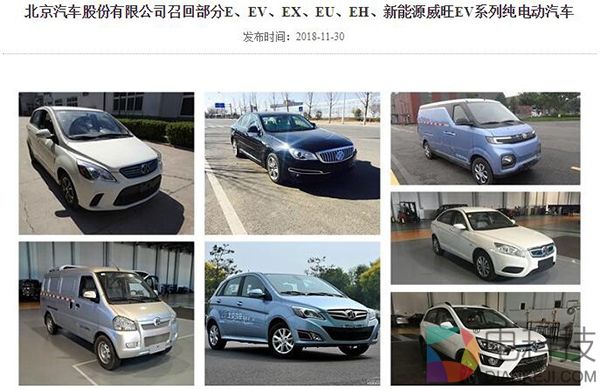 11月30日,国家质检总局发布一则召回显示:日前,北京汽车股份有限公司根据《缺陷汽车产品召回管理条例》和《缺陷汽车产品召回管理条例实施办法》的要求,向国家市场监督管理总局备案了召回计划,将自2018年12月1日起,召回2012年2月28日至2018年5月8日生产的部分E、EV、EX、EU、EH、新能源威旺EV系列纯电动汽车,共计69358辆。
