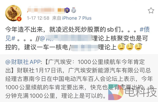 今天,广汽埃安新能源汽车有限公司总经理古惠南在同一个论坛上做出了回应。他强调,续航达1000公里的新能源车在今年肯定会出现,但是成本不会低。