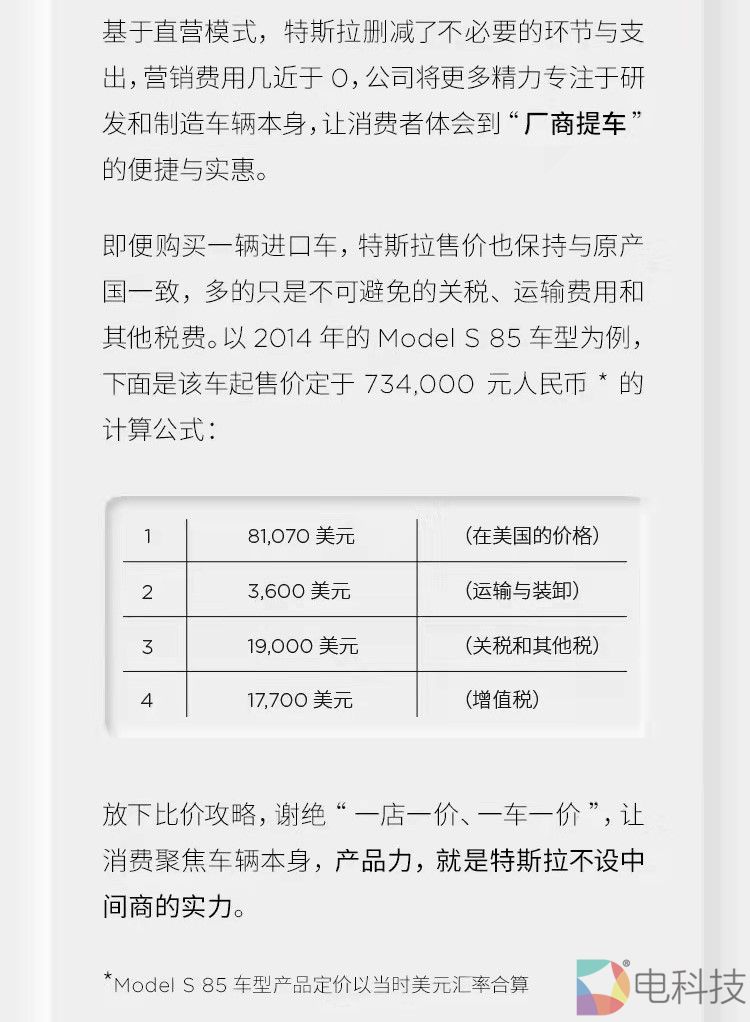 众所周知,特斯拉目前采用直营模式,在线下没有设立任何4S店,至于为何要选择该销售模式,今天特斯拉终于给出了官方回应。特斯拉表示,消费者购买一台传统品牌汽车,一般需要经过至少8