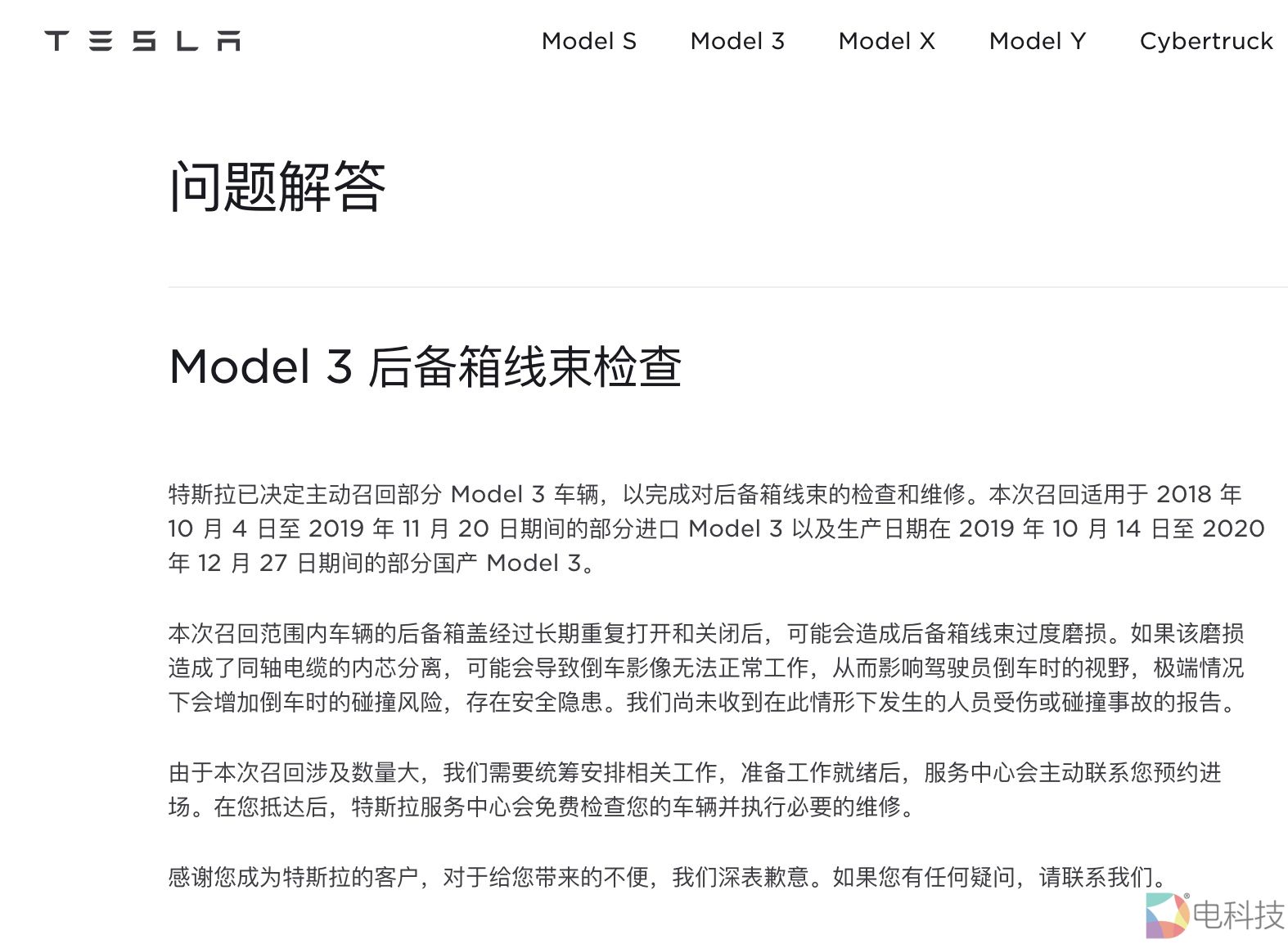 需要注意的是,由于使用了不同材质的后备箱线束设计,2021款Model 3不在此次召回之列。