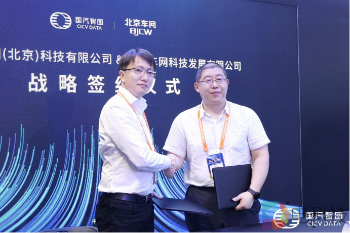 (上图:国汽智图总经理冯昶先生与北京车网总经理孙宁先生战略签约)