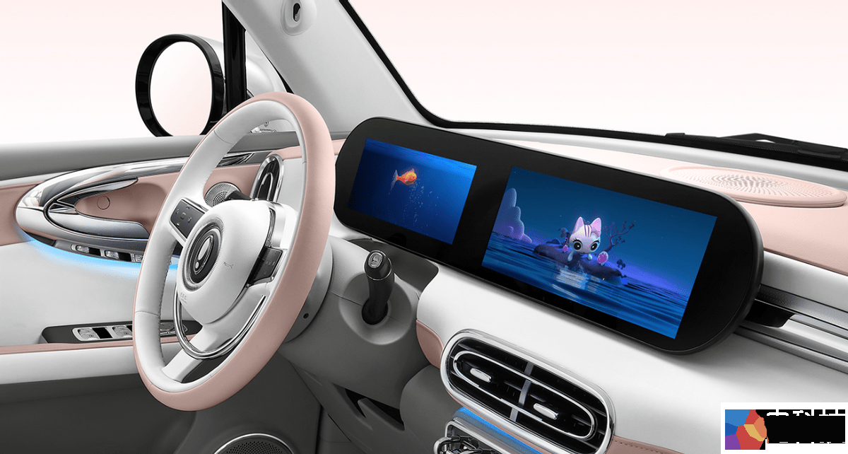 与可爱、复古的外观一样,芭蕾猫的内饰设计也采用了可爱、萌的设计语言,座舱内部大面积的软性材质包裹和嫩色撞色拼接,使得座舱女性化感觉特别强烈。