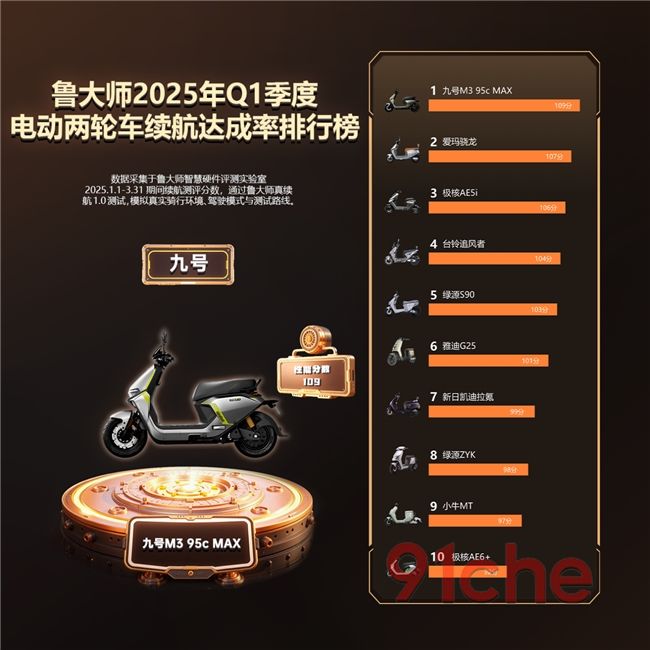 电动两轮车续航达成率榜数据通过鲁大师真续航1.0测试,模拟真实骑行环境、驾驶模式与测试路线,以“成都三环通勤续航圈”为基础,让车辆在户外场景真实模拟用户每日通勤状态。