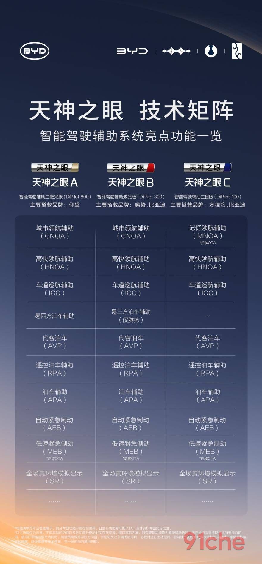 在比亚迪承诺为智能泊车兜底的同时,还即将进行天神之眼史上最大规模的智驾OTA。本次天神之眼OTA升级全面覆盖泊车、行车、安全三大板块十余项功能,涉及天神之眼A/B/C三大平台多款车型。