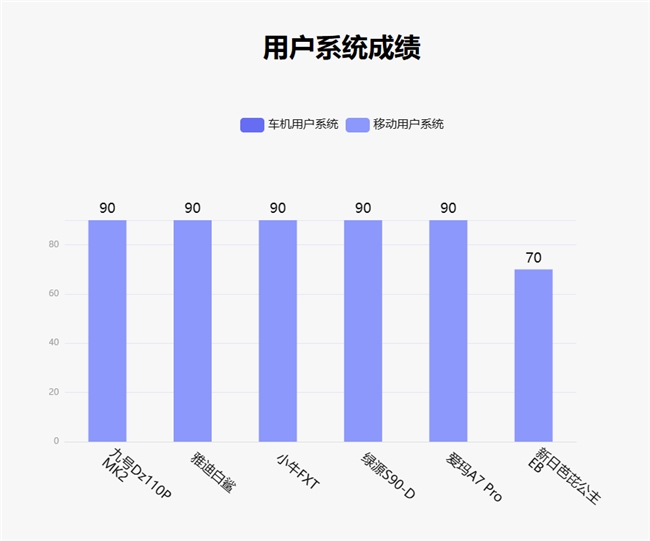 用户系统由车机用户系统和移动用户系统两个板块组成,根据信息丰富程度和使用效率综合考量评分。