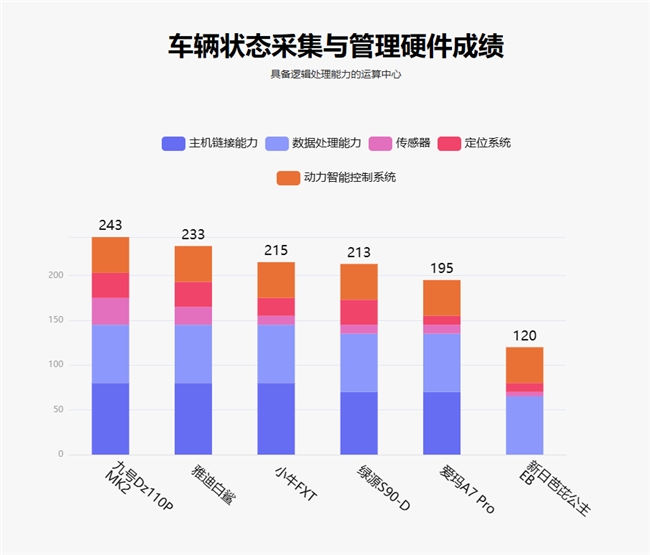 在鲁大师电动车智能化测评体系中,智能化基础由车辆状态采集与管理硬件和车辆交互传输系统构成。