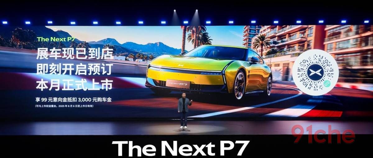 (2025年8月6日,北京)今日,小鹏汽车在北京举办「THE NEXT 全新小鹏P7·中国首秀」发布会,新车正式亮相并开启预订,共发布3款车型,分别为702km长续航版、820km超长续航版、750km高性能版。2025年8月6日至全新小鹏P7上市日,预订用户可享99元意向金抵扣3000元购车金的权益,同时可与上市权益叠加使用。