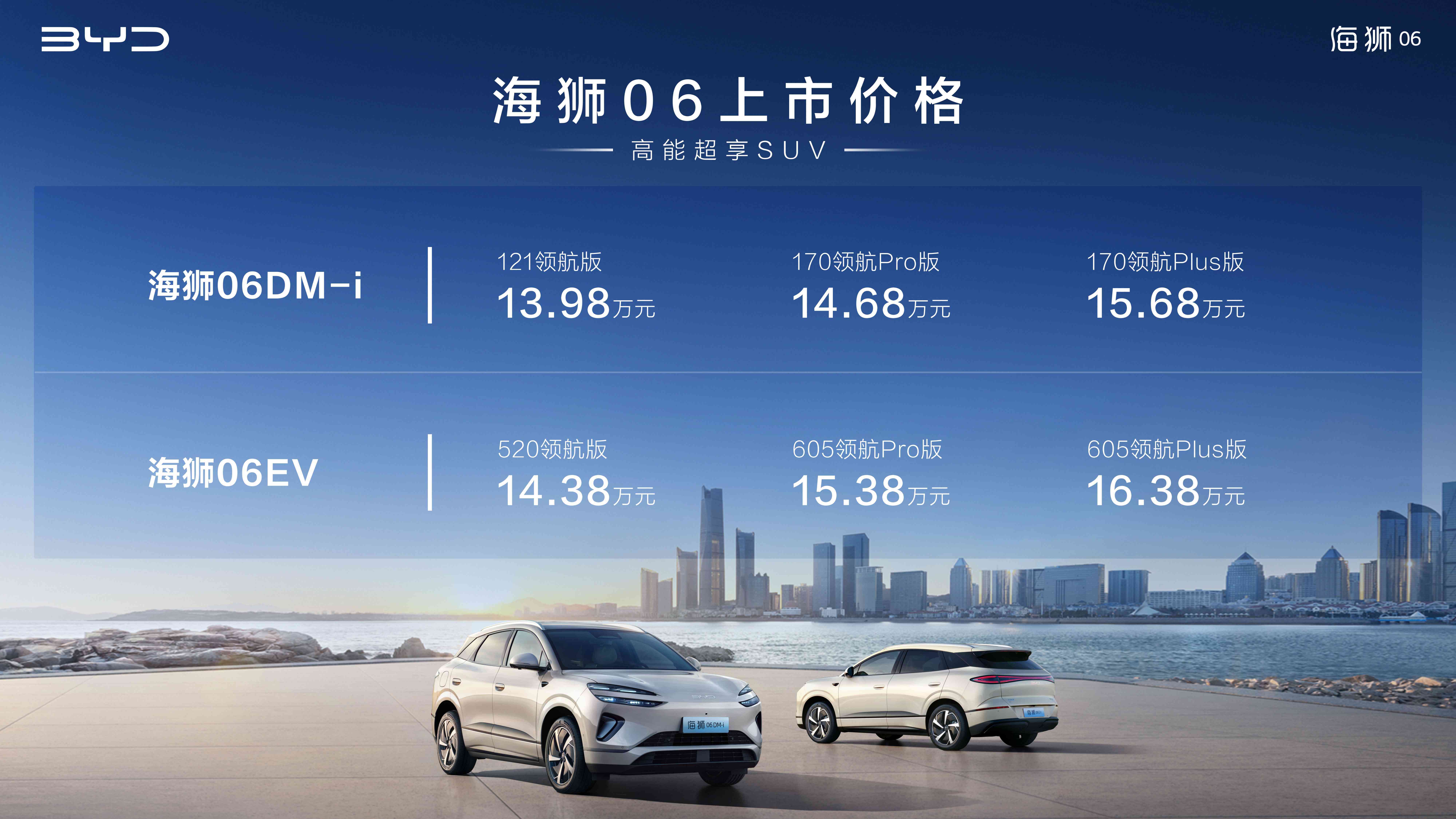 比亚迪海狮06以全能实力为用户打造覆盖日常到远方的高品质出行生活,不仅刷新新能源出行品质新标准,更以技术实力引领中型SUV价值新高度。目前新车已到店,欢迎用户通过比亚迪APP了解详情或到比亚迪海洋网各大门店品鉴试驾。