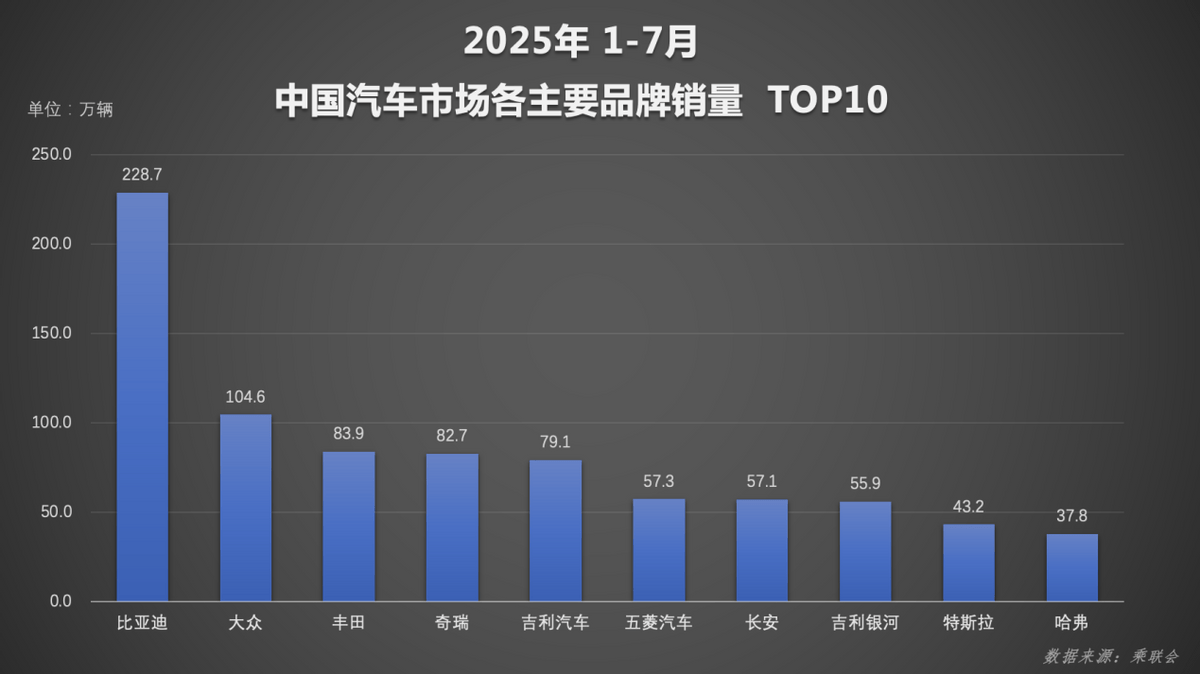 7月开始,中国车市正式进入2025年下半场较量。尽管处于传统销售淡季,比亚迪依旧保持稳健表现,绝对领先优势持续扩大。在企业(集团)新能源汽车、单品牌两个核心维度,其单月及1-7月累