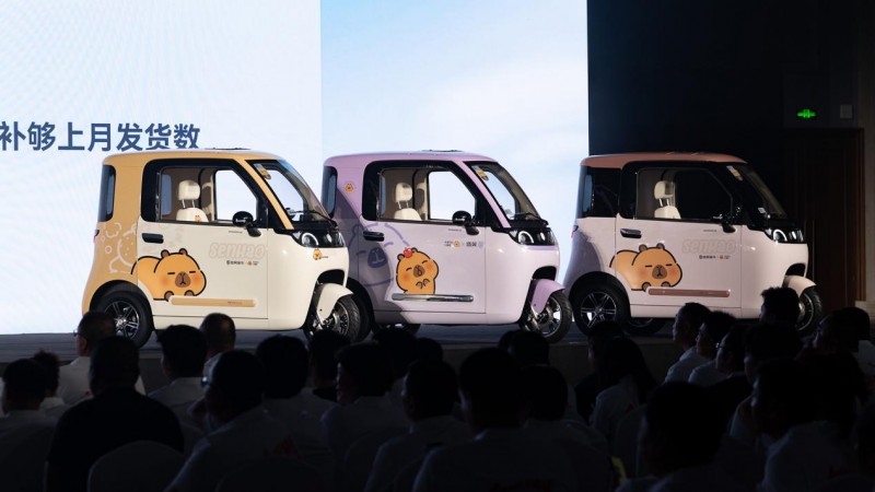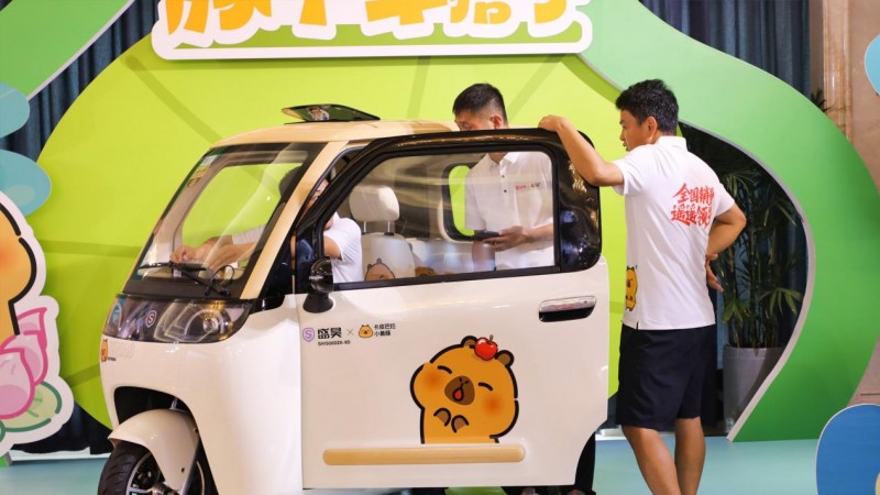 产品陈列区以“解剖式展示”让米粒E01的细节设计无所遁形。马卡龙治愈色车型一字排开,从温暖的巧克棕、栗子棕到梦幻浪漫的霞光紫、海雾蓝,成为现场最出片的“拍照打卡墙”。在零部件展区,轮胎的纹路触感、高回弹的舒适座椅样本均可亲手触摸,1500W的电机直观呈现强大动力,让“快”有了可感知的重量。IP联名场景区中,盛昊篷车×卡皮巴拉小黄豚联名款篷车被打造成“移动的治愈小窝”,而日常生活主题展示中,则通过氛围感场景让“小快灵稳”的优势融入到生活中。