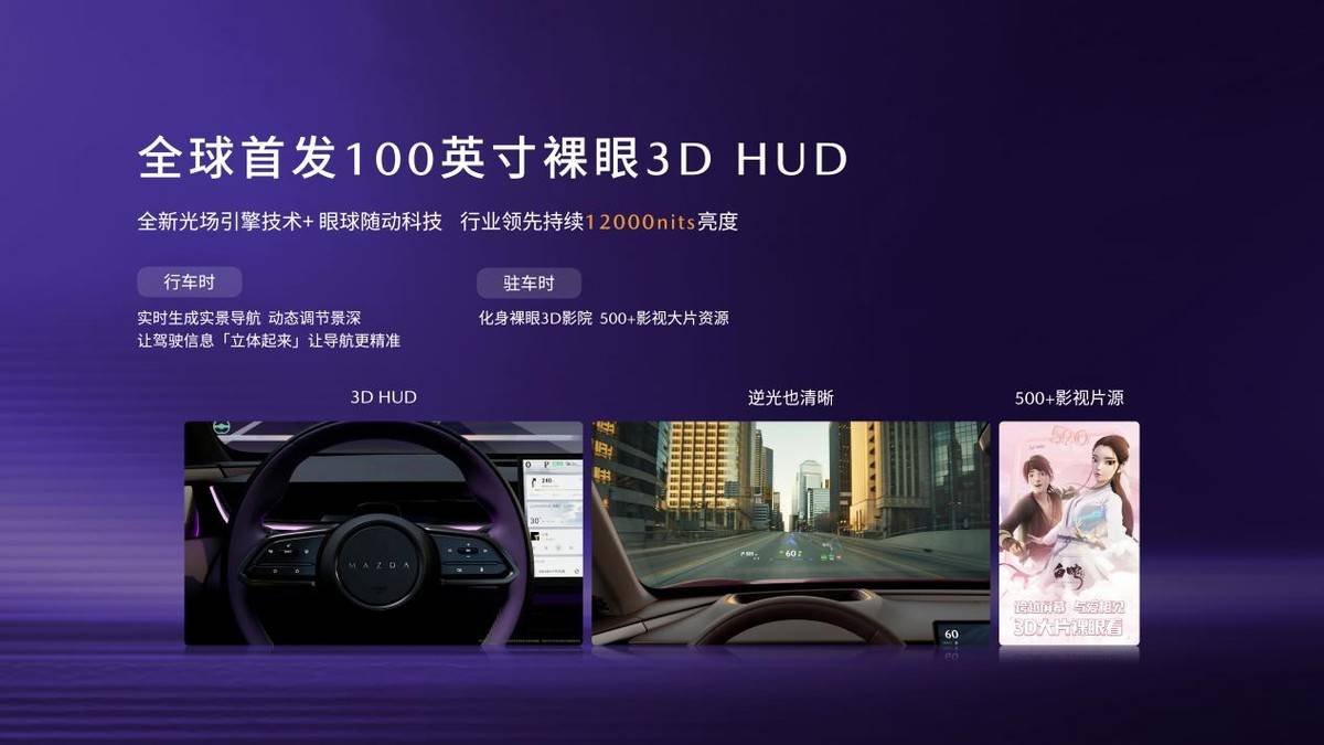 EZ-60全球首发100英寸裸眼3D HUD,将车载HUD视觉技术推向全新高度。SLHM空间算法+导航让信息呈现出“分层景深”,最大限度消除视觉延迟,避免潜在的分心事故。眼位追踪功能让画面和眼球随动,解决了HUD“飘、抖、晃”的技术痛点。此外,3D-HUD还能化身裸眼3D影院,线上影视库提供超过500部3D片源,在停车休息或和家人露营时,超爽大片可以一次看个够。