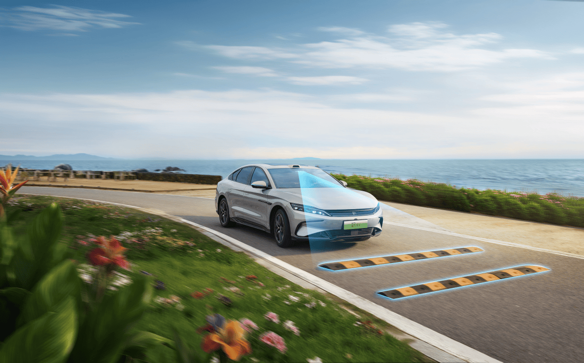 与此同时,汉家族始终坚持整车智能才是真智能。汉长续航版搭载了一套高阶智能底盘——云辇-C智能阻尼车身控制系统。其与主动预瞄功能完美配合,可识别前方15米路况,精准调节悬架阻尼,无论是突然出现的坑洼还是连续减速带,都能从容化解。