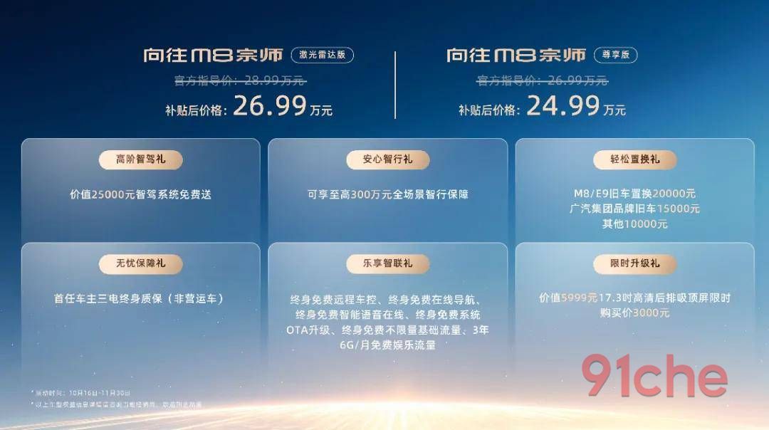 10月16日,备受瞩目的传祺向往M8车系全新力作——向往M8宗师,在2025中国国际新能源和智能网联汽车展览会上重磅发布。新车上市指导价26.99万元起,综合补贴后,售价低至2