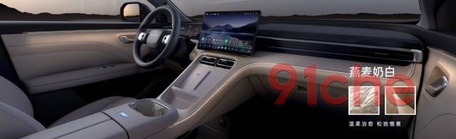 进入车内,大量圆弧设计营造了温馨的居家氛围,翼展式的IP,带来了舒展的环抱感。高频触摸区域大量使用软包,豪华品质拉满。近4米长的、32色柔光氛围灯,环绕着座舱,进一步强化了家的温馨氛围。内饰色彩拥有燕麦奶白、暖绒浅棕、大溪地灰三种低饱和度的柔和色彩,搭配专属木纹肌理,满足不同审美偏好的用户。