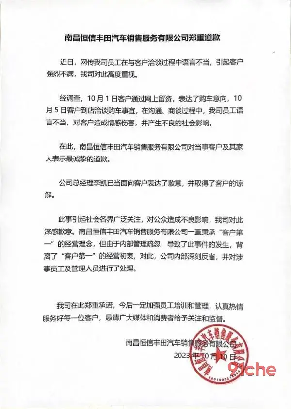 比如:丰田南昌店销售骂顾客:不买就gun!