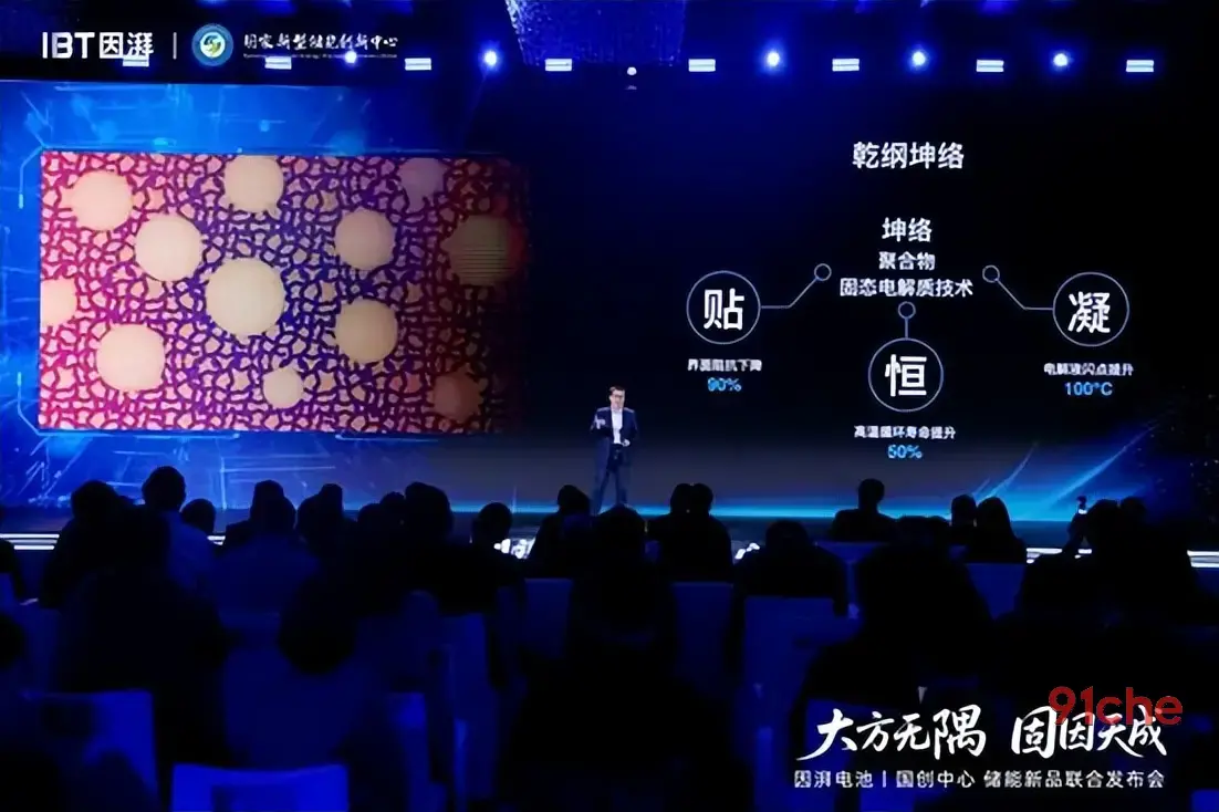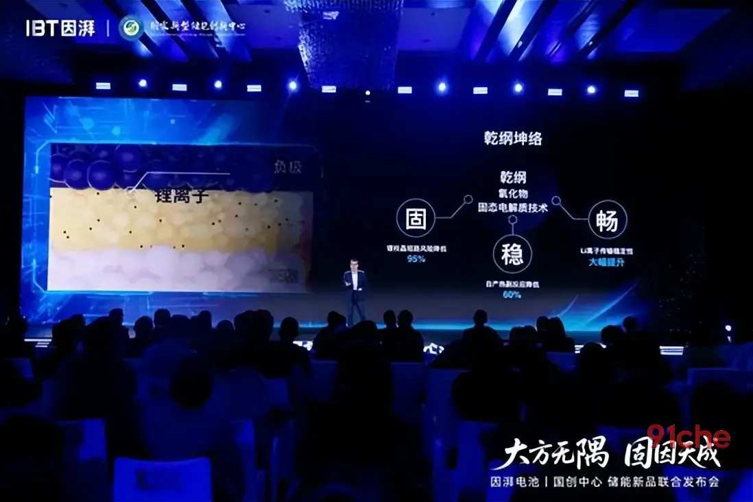 在全场瞩目下,因湃正式发布全新 “大方无隅” 系列 587Ah 储能电芯,包含浩瀚版(液态)电芯与乾坤版固液混合(半固态)电芯两款核心产品,以技术突破填补行业高端安全储能产品空白。