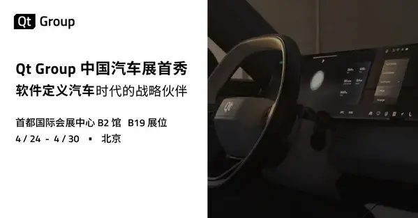 Outpace项目全球首展:在中端车规级芯片上实现高性能3D图形并集成功能安全 全球领先的软件技术提供商Qt Group(Nasdaq Helsinki: QTCOM)今日宣布将参展于4月24日开幕的2026北京国际汽车展览会,诚邀行业伙伴莅临首都国际会展中心 B2馆B2B19展位。 亲临现场,体验Qt Group技术与合作伙伴的创新展示 除汽车软件开发生命周期中各阶段的互动体验区,Qt Group还将联合TCL驭新智行、镁佳科技、水晶光电、普华基础软件,共同展示全景式座舱 HMI、妙控屏、统一座舱引擎、增强现实抬头显示、一体化智能座舱安全解决方案等项目。