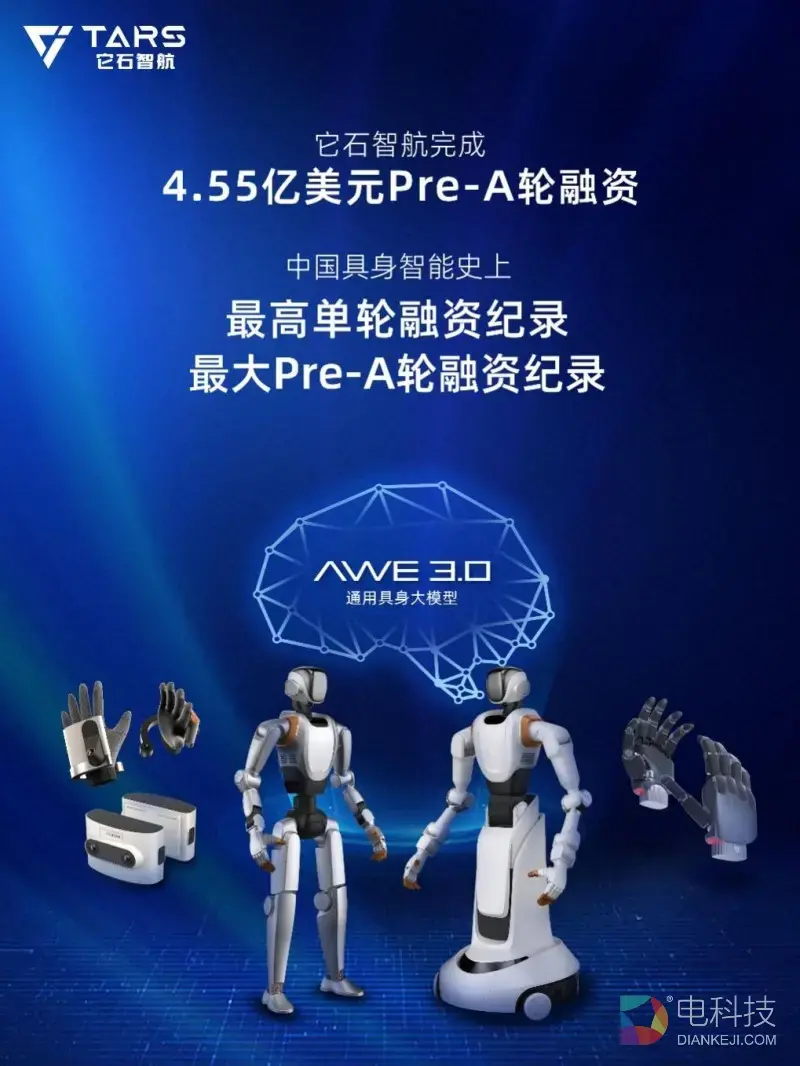 4月16日,它石智航宣布完成超4.5亿美金Pre-A轮融资,创下中国具身智能有史以来最高单轮融资纪录,仅用一年时间成功领跑具身智能行业第一梯队。
