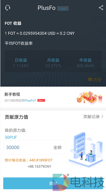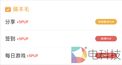PUF——PUF即为原力值,新用户注册即得20PUF,可以通过登录签到分享,每日游戏获得。只要每天登登账号,动动手指,就可以百分百获得PUF,原力值可以通过矿池贡献换取FOT,也就是平台币。操作简便,即刻赚钱!