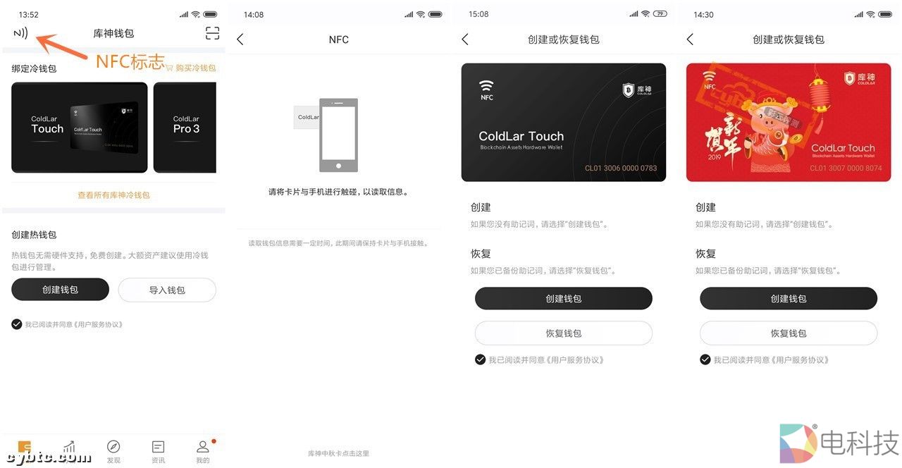 首先先不谈太多的技术参数,让我们来直接上手使用一番再进一步深入,当然首先得有一个带有NFC功能的手机,其次你得有张ColdLar Touch 卡式钱包,最重要的是还得有数字货币。