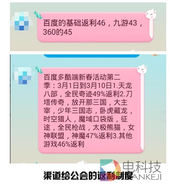 自从渠道开始以充值返利的方式争抢公会资源后,大大小小的公会就一窝蜂的涌了过来,场面一度失控,后来渠道一想,如果这样的战斗继续打下去,光给公会的返利,就会让自己赔个精光,于是渠道便给公会设了一道坎儿,只有充值到1000万的公会才能拿到追加的10%返利。