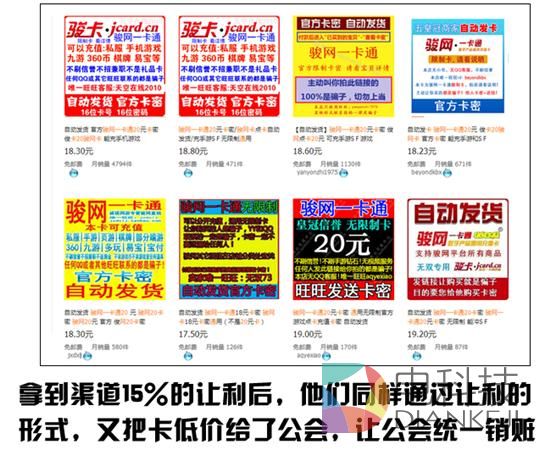 然而一卡通,这个多年来不温不火的平台并没有多少用户,于是又找来了我们的老朋友——公会。以骏网为首的一卡通通过让利的形式,把卡低价给了公会,让公会统一销赃,公会得到了利润,一卡通也完成了任务。