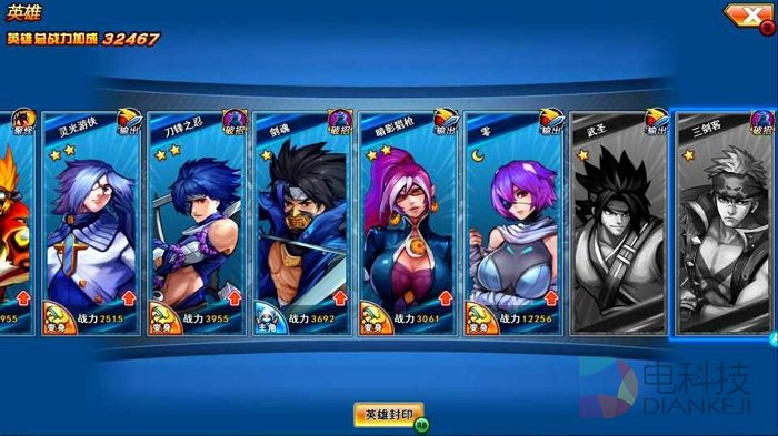当玩家在《乱斗之王TV版》中等级达到11级并通关第二章第二关任务后,便可开启英雄,到目前为止《乱斗之王TV版》中有8位英雄可供玩家们选择,分别是疾风丸、灵光游侠、刀锋之忍、剑魂、暗影猎枪、零、武圣、三剑客。这8位英雄当中,除了疾风丸、灵光游侠、刀锋之忍。