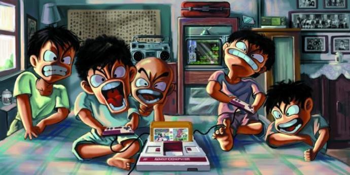 隔壁家搞来的小霸王(红白机),被一群不知哪儿冒出来的熊孩子们奉若神物般簇拥至自带天线的“黑白大彩电”荧幕前,一时间为手柄的控制权你争我夺。在僧多粥少的局面下,最终多数人仍然只能一解眼瘾。