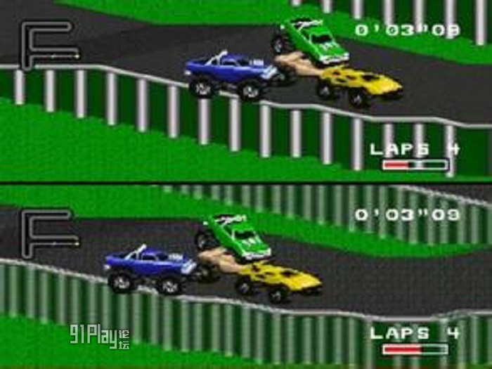 就在公司成立之初的91年,当时Silicon & Synapse用4万美元开发经费以及短短4个月的时间为超任(Super Famicom)和世嘉创世纪(Sega Genesis)开发出了一款名为《RPM赛车》(RPM Racing)的游戏,以今天标准看,这无疑是一款糟糕的游戏,玩家需要在无限场景中忍受那拙劣的操作感,仿佛游戏设计的初衷就是为了考验玩家的耐心,丝毫无法让人感受到竞速游戏激烈的爽快感。