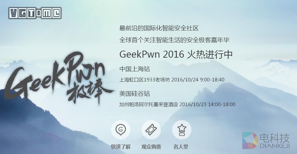 根据其官方解释,GeekPwn 是一个为了给安全极客更多展示自己才能的舞台和机会,它除了是一场黑客破解大赛外,还是一个安全极客的大 Party,任何优秀的极客及其研究成果都有可能出现在 GeekPwn 嘉年华的现场。而从介绍来看,长亭安全研究实验室参加的应该就是10月24日上海站的活动,他们应该是在现场演示成功之后便在网上发出了视频。