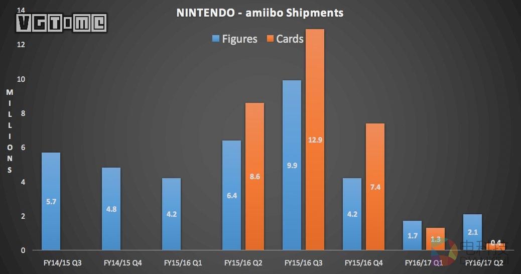 另一方面,amiibo 的表现也不如人意,模型版销量仅为210万套,卡片版则为40万套,分别减少了380万套和170万套。而同样是因为没有太多数字内容提供,这一季度的数字销售额也有所下滑。
