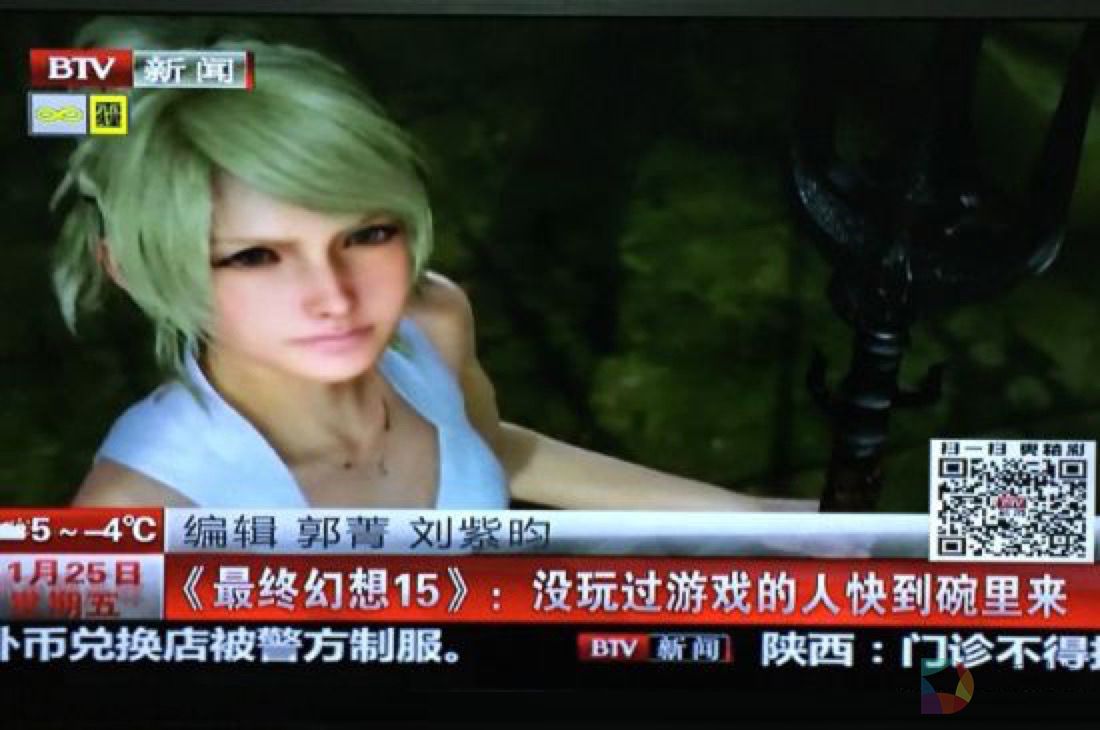 上周,北京卫视晚上8点的新闻里,出现了田畑端的采访画面和FF15游戏画面,并且标题还是“没玩过游戏的人快到碗里来”,在国内电视台新闻里如此直白地宣传即将正式发售的家用机游戏尚属首次。