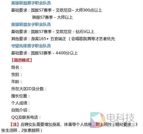 而且,这次战队的组成不仅仅只有男队,还实力招收了女队,这在电竞俱乐部还真是少见,男队的要求是一区大师300点以上,这个无可厚非,但是一波女队的要求让网友深感佩服,身高165,还要能歌善舞,网友都感觉,这确定不是在招女主播吗?