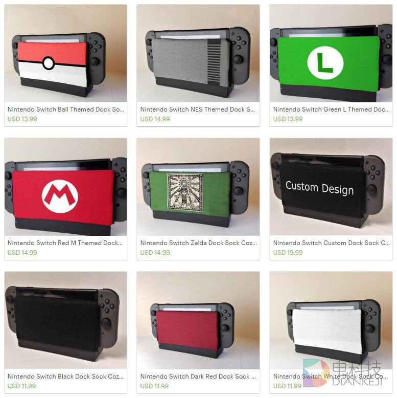 这位叫做TinckoyMakesitSew的卖家设计了一款叫做“Switch底座舒适袜子”的产品——他用一种柔软的超纤维材料制成了一个保护罩,你可以将其罩在底座上面对屏幕的一侧。这样,不仅超纤维材料能够在塑料与屏幕之间起到缓冲作用,而且穿了”袜子“的底座则看上去更显得特别,更像是独特的”限定版“。