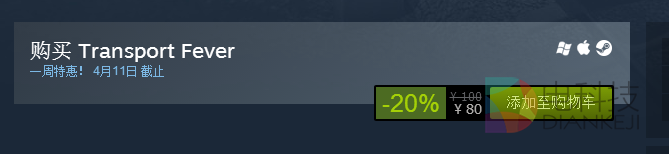 《狂热运输》(Transport Fever)是一款高度自由,模拟经营的沙盘游戏。包括铁路、公路、航空、海运线路的建设,狂热运输相比狂热火车的铁路公路建设更加自由,可以建设现实生活中全部形式的道路。目前游戏折扣20%原价100元现价80元。