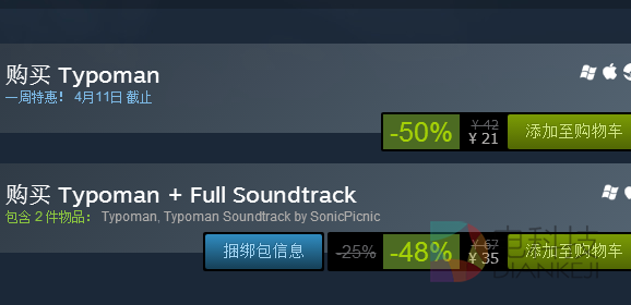 今天的steam特惠为大家带来《Typoman》和《狂热运输》有兴趣的不要错过。