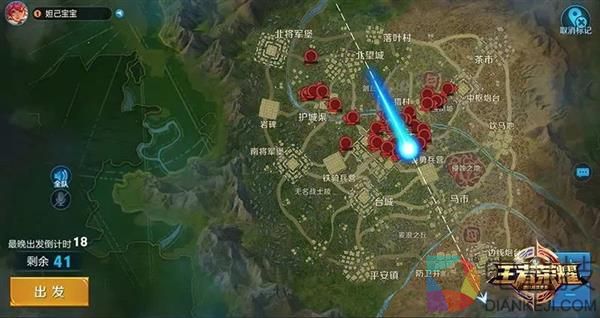 在出生路线(图中虚线)行进到达自己中意的区域时,点击【出发】按钮就可操作轮盘调整自己的出生点。