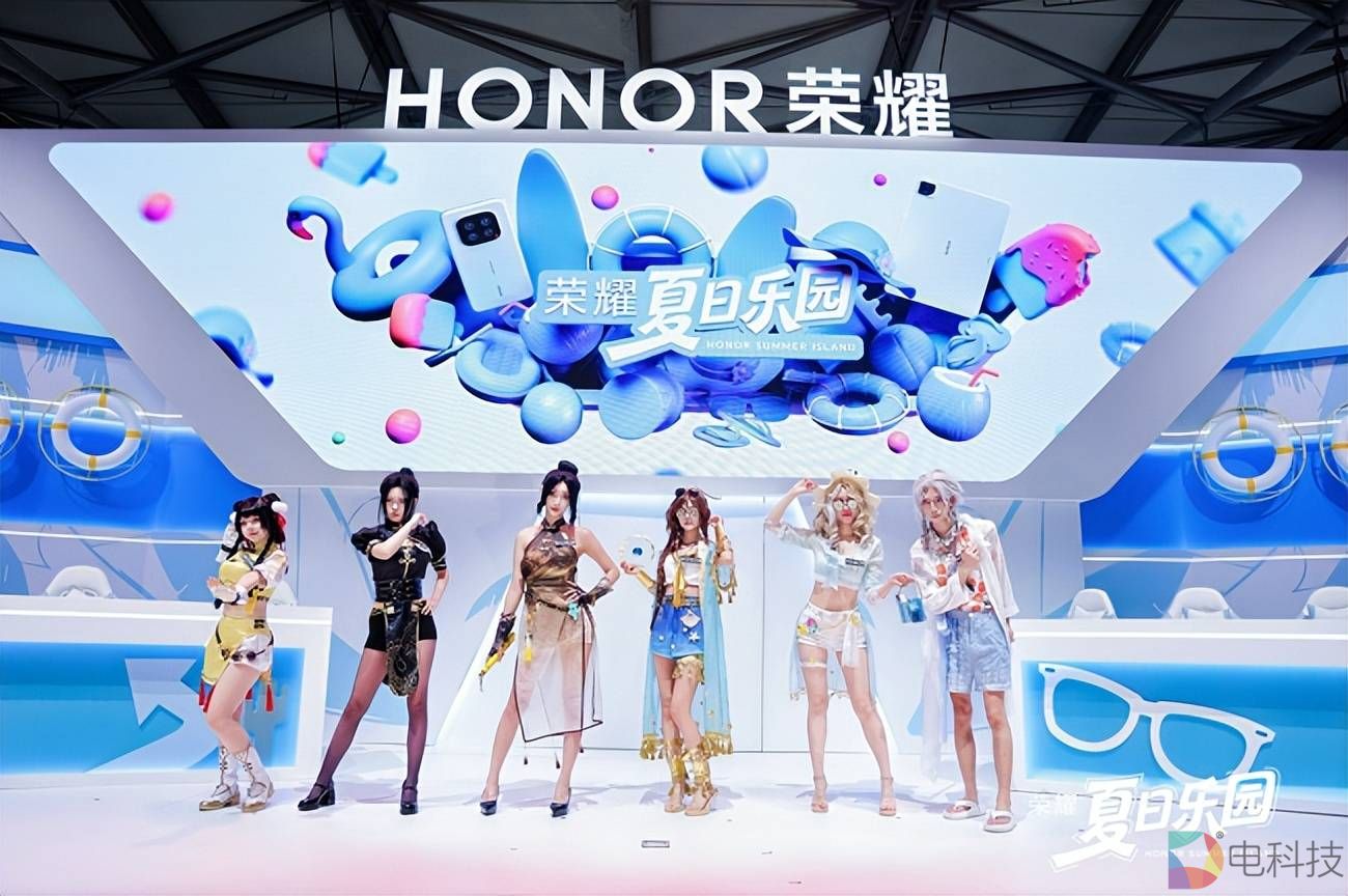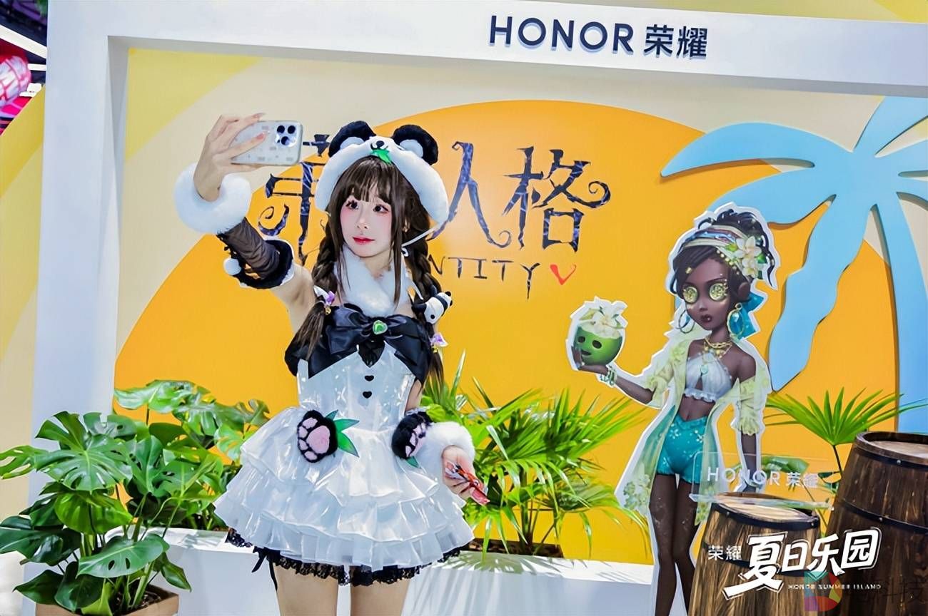 以「荣耀夏日乐园」为主题,荣耀设置了「荣耀游戏中心」「酷夏极能体验站」「夏日自拍馆」等多个区域。不仅合作了《第五人格》《永劫无间》两大热门游戏IP,打造了富含游戏特色的互动环节,还有真人Coser盲盒活动以及海量周边礼品相送,为玩家们带来了众多惊喜体验。