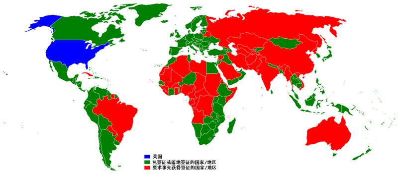 大约有186个国家和地区给予普通美国护照持有人免签证和落地签证待遇,150个国家和地区可以免签证进入,包括港澳台地区。