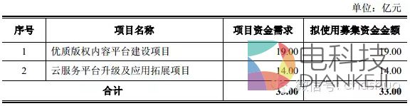 其中19亿元的优质版权内容平台建设项目,是为了加快公司“由单一有线电视传输商向全业务综合服务提供商、由传统媒介向新型媒体”的战略转型步伐,提升公司优质版权内容产品的核心竞争力,建立差异化的内容服务特色,拓展新媒体用户。将用于电影、电视剧、动漫、网络剧、综艺节目、新媒体短片等优质海内外内容版权的集成和购买,以支持高清交互数字电视平台、电视院线、互联网电视、手机电视和其他新媒体业务的发展及全媒体版权分销,为用户提供更高品质的产品和服务,提升客户体验和忠诚度。