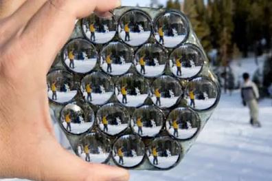 人类模仿昆虫,制造了类似复眼的镜头,如图15所示,在一个大镜头上集成了数十个小镜头。依随光学工艺的改进,人们制造出在一张塑料薄膜上集成了数千个微小镜头。斯坦福的博士生吴任基于这种想法,创立了光场相机Lytro公司。