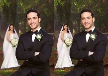 如图17所示的婚纱摄影:同一个光场相片,我们既可以聚焦于靠近镜头的新郎;也可以聚焦于远离镜头的新娘。