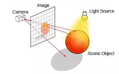 传统的光学相机,其理想模型就是针孔相机。在计算机图形学中,传统的渲染方法都是基于这种相机模型。如图7所示,从相机的光心(optical center)出发,经过成像屏幕的每一个像素,发出一条射线。光学跟踪法(ray tracing)用几何光学的物理法则计算这条射线的颜色,即为相应像素的颜色。图8展示了一个用光学跟踪法算出的渲染图像。在这里,我们需要一个概念上的转换,每个像素不是一个点,而是一条射线,这是理解光场的关键!换言之,一张相片就是通过光心的一簇射线。《最终幻想》就是用光学跟踪法来渲染制作的。