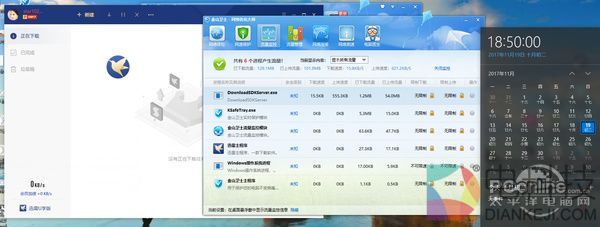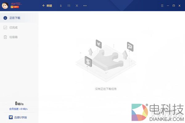 这是从官方下载,新装的迅雷U享版,里边没有任何任务(包含已完成与未完成任务)。为了确保环境没受干扰,笔者把电脑重新开机,然后运行迅雷U享版,并使用金山卫士的“流量监控”工具对迅雷U享版流量进行监控。