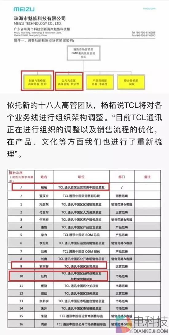 网友@陈兆雄雄雄雄 爆料杨柘将其所管辖的部门总监换成原来在TCL的同事,对魅族内部人员营销架构进行大换血,这引起了魅族内部员工严重的不满。