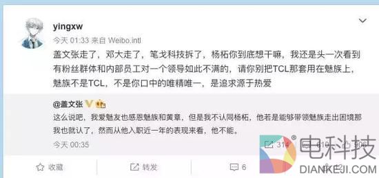 盖文张走了,邓大走了,笔戈科技拆了,杨柘你到底想干嘛,我还是头一次看到有粉丝群体和内部员工对一个领导如此不满的,请你别把TCL那套用在魅族上,魅族不是TCL,不是你口中的唯精唯一,是追求源于热爱。