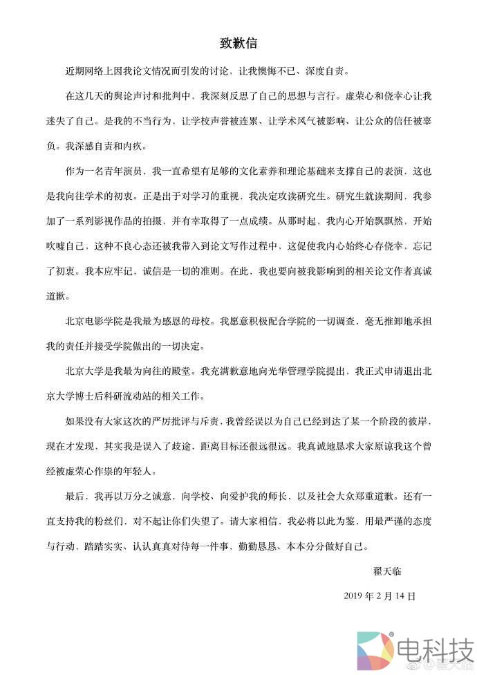"知网是什么东西啊?"说出这句话的翟天临于2月14日在微博上发表了"致歉信",为过去一周内引发巨大波澜的"学术不端"事件道歉,在字里行间默