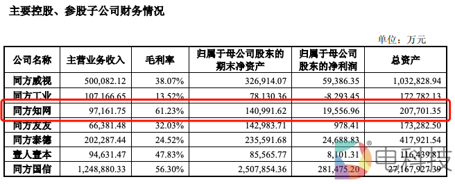 根据同方股份披露的2017年报,旗下同方知网的营收为9.72亿元,净利润高达1.96亿元,毛利率达到了61.23%。