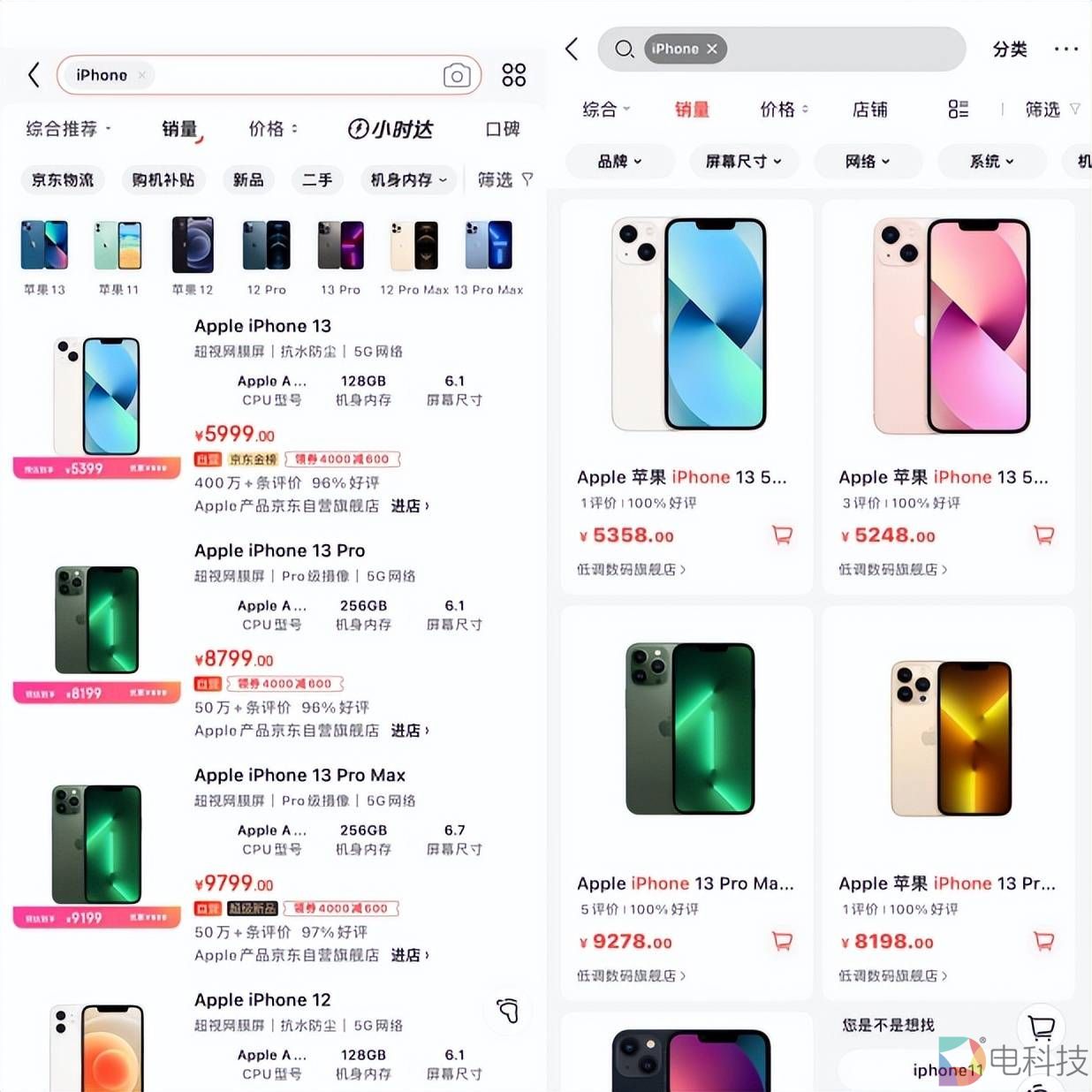 例如在京东搜索“iPhone”第一位的商品评价数量400万+;而在在当当搜索“iPhone”,按照销量排序排在最前的商品评价数量都是个位数,可谓是惨不忍睹了。