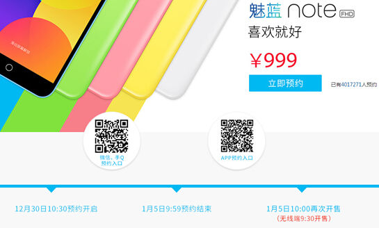 图:下周一(1月5日)魅蓝note将会再次开启新一轮的开放购买。